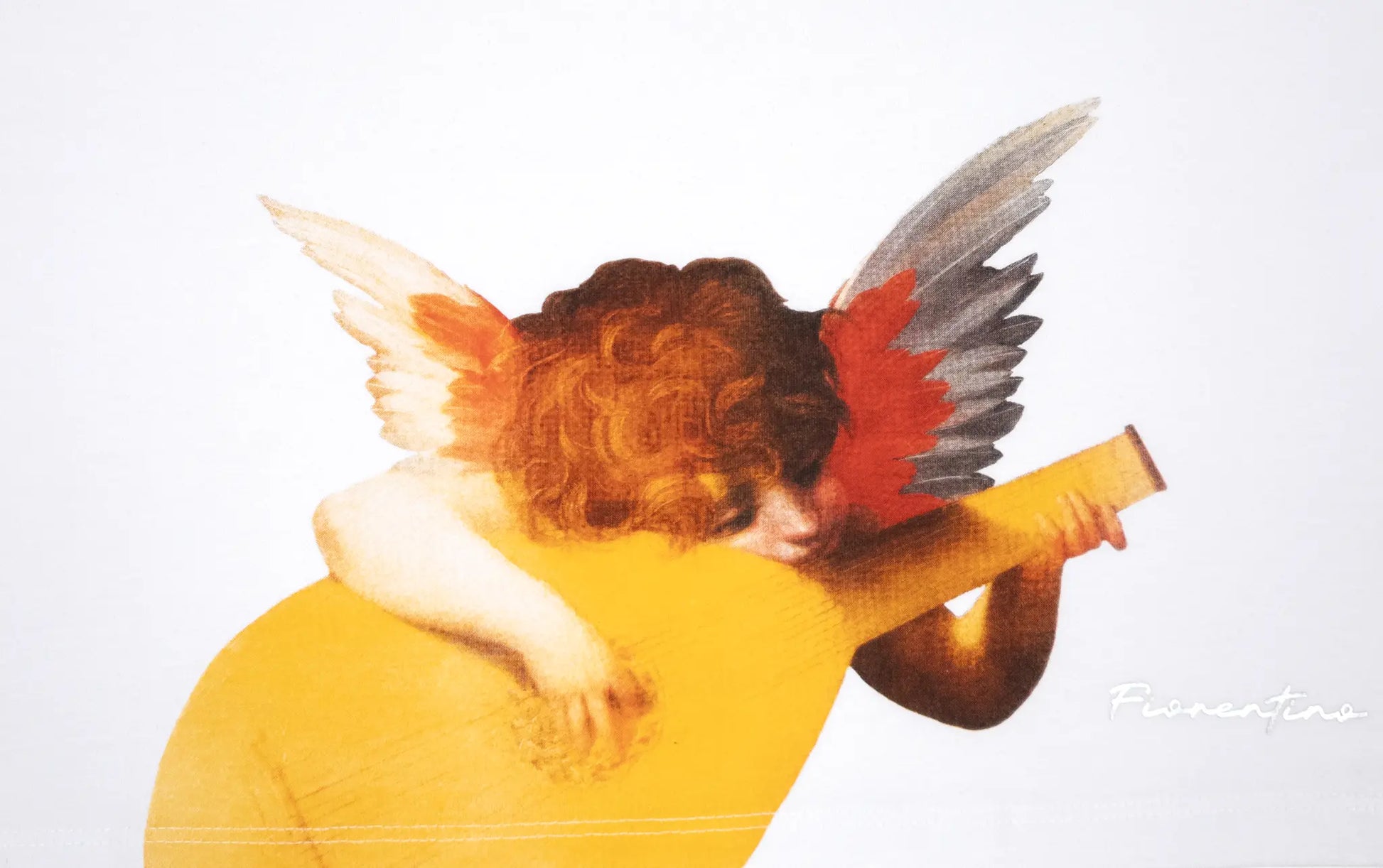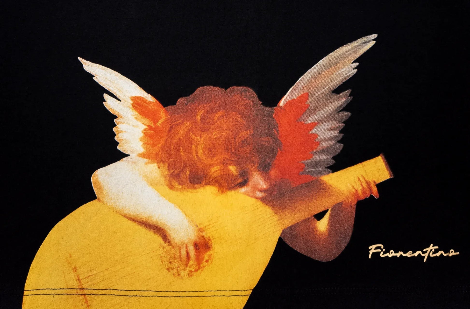 Una celebración de armonía y delicadeza. Inspirada en la obra de Lorenzo di Credi Fiorentino, esta playera captura la serenidad de un ángel que toca su instrumento, evocando un momento de calma, inspiración y belleza celestial.